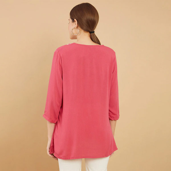 • "Pink and white embroidered tunic ,has a v-neck, three-quarter sleeves